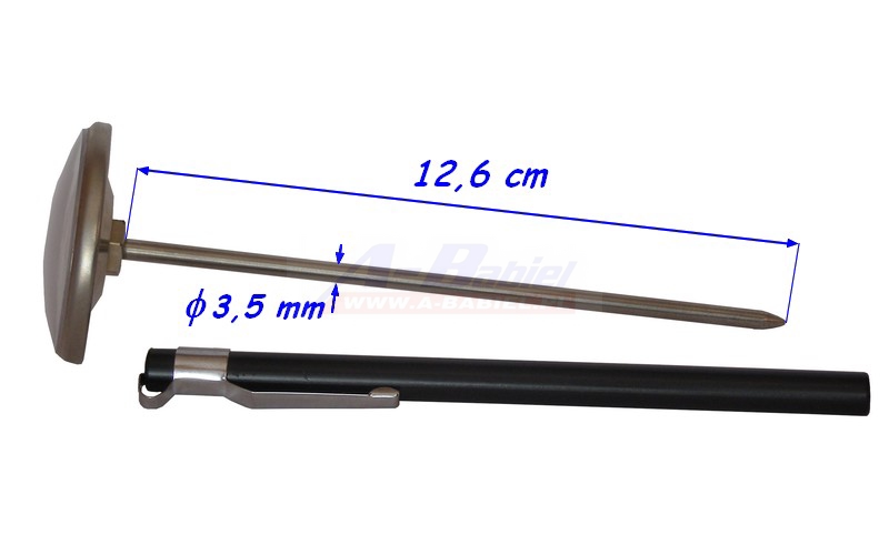 Termometr z sondą może pracować w temperaturze od 0 do 100°C. Sonda i korpus są ze stali nierdzewnej.Całkowita długość termometru z sondą wynosi 14 cm. Świetnie sprawdza się jako termometr do gotowania czy zaparzania lub jako termometr do wędzenia. Można używać go również do szynkowara.