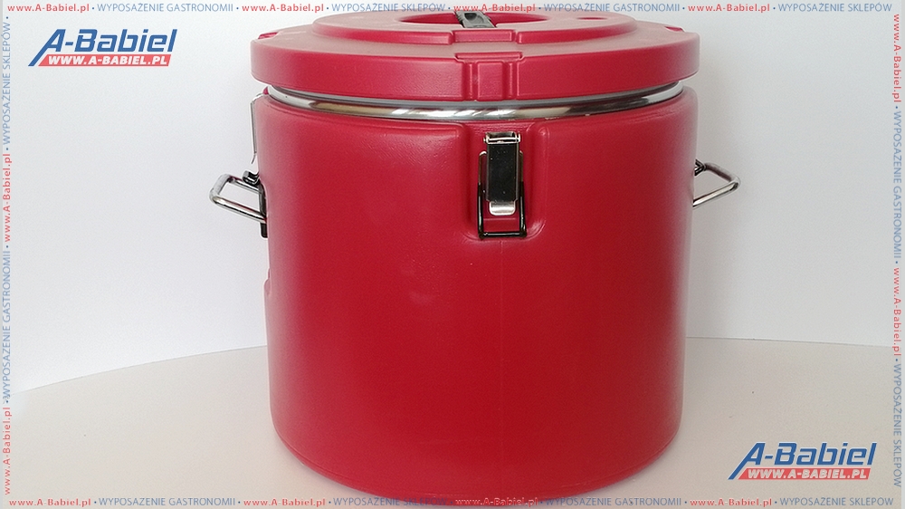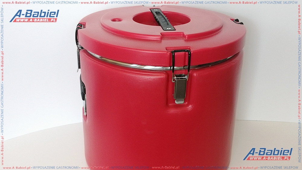 Pojemnik termoizolacyjny wyposażony jest w dwa wykonane ze stali nierdzewnej, masywne uchwyty ułatwiające transport oraz cztery zatrzaski zamykające pokrywę . Wysoka jakość i wytrzymałość tych elementów , gwarantuje wieloletnie bezawaryjne użytkowanie.